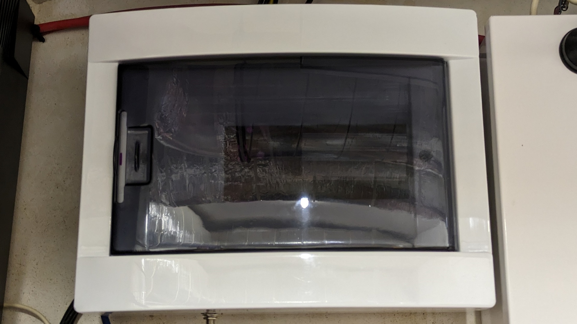 Oprócz sterownika zamontowałem też stycznik 3 fazowy który jest sterowany równolegle i bezpośrednie z termostatów w nagrzewnicy. To ze względów bezpieczeństwa by konwencjonalne zabezpieczenia w nagrzewnicy miały priorytet przed moim sterownikiem. Tutaj już są większe moce i bezpieczeństwo i niezawodność na pierwszym planie. Oprócz stycznika mamy również dodatkowe czujniki temperatur które obsługuje sterownik. Jeden zainstalowany na wylocie z nagrzewnicy sprawdzający temperaturę nagrzanego powietrza, drugi na radiatorze traków do kontroli ich pracy. Z praktyki zauważyłem że zabezpieczenie termiczne nagrzewnicy jest nastawione na około 40 stopni C i w takim razie nie ma sensu ustawiać sterowni na osiągnięcie tej temperatury powyżej tej wartości.